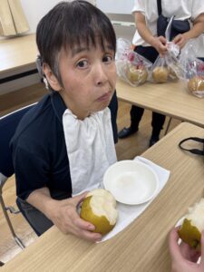 「あまーい!」「少し酸っぱいけどおいしい!」「いつも食べている梨よりおいしい!」という声があちこちから聞こえてきそうなくらい、みんな笑顔いっぱいでした。(^^♪