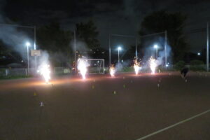 職員も大きな花火に火を点けることに慣れておらず、腰が引けながら点火していましたが、きれいな花火を見ることができて良かったです。