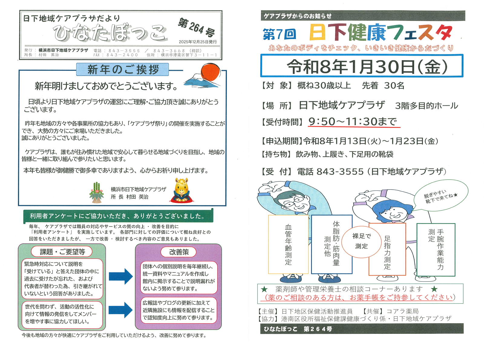 広報誌ひなたぼっこ264号のお知らせ!|お知らせ | 社会福祉法人 ル・プリ NEWS お知らせ ホームお知らせ広報誌ひなたぼっこ264号のお知らせ! 2025.12.25 お知らせイベント施設情報その他 広報誌ひなたぼっこ264号のお知らせ! 表 裏 ★印刷していただく場合は、画像を保存の上、画像印刷でお願い致します。 横浜市日下地域ケアプラザ 一覧へ戻る CATEGORY お知らせ イベント 施設情報 その他 ARCHIVE 2026 2025 2024 2023 2022 2021