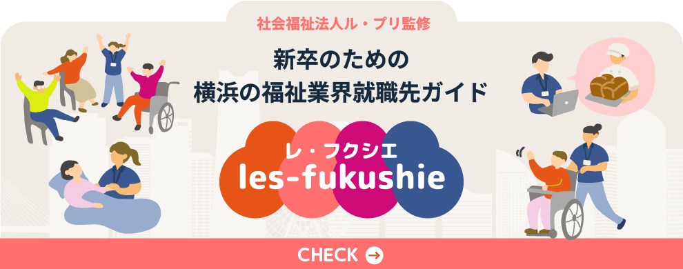 - 健康保険・厚生年金・雇用保険・労災保険・退職共済加入(社会福祉法人横浜社会福祉事業協会・独立行政法人福祉医療機構)・横浜市勤労者福祉共済「ハマふれんど」加入